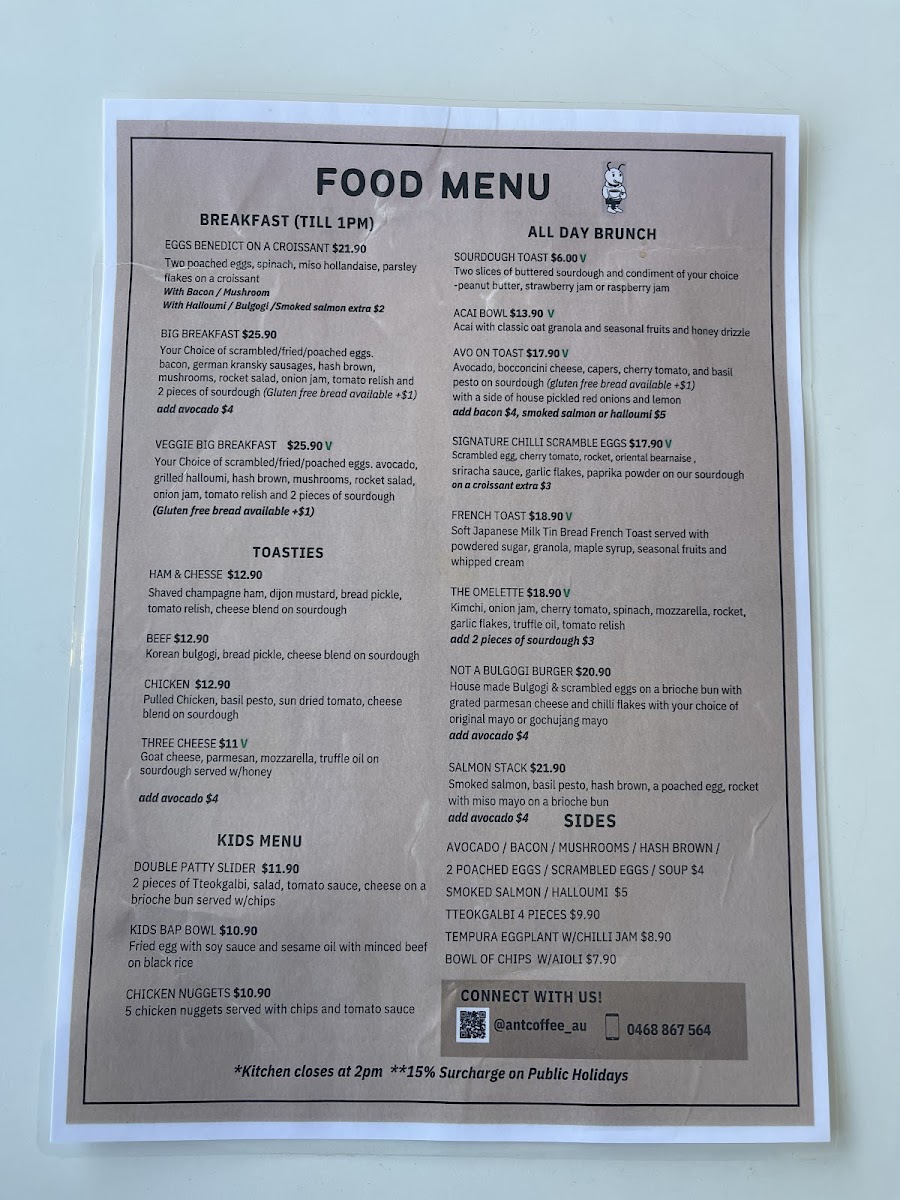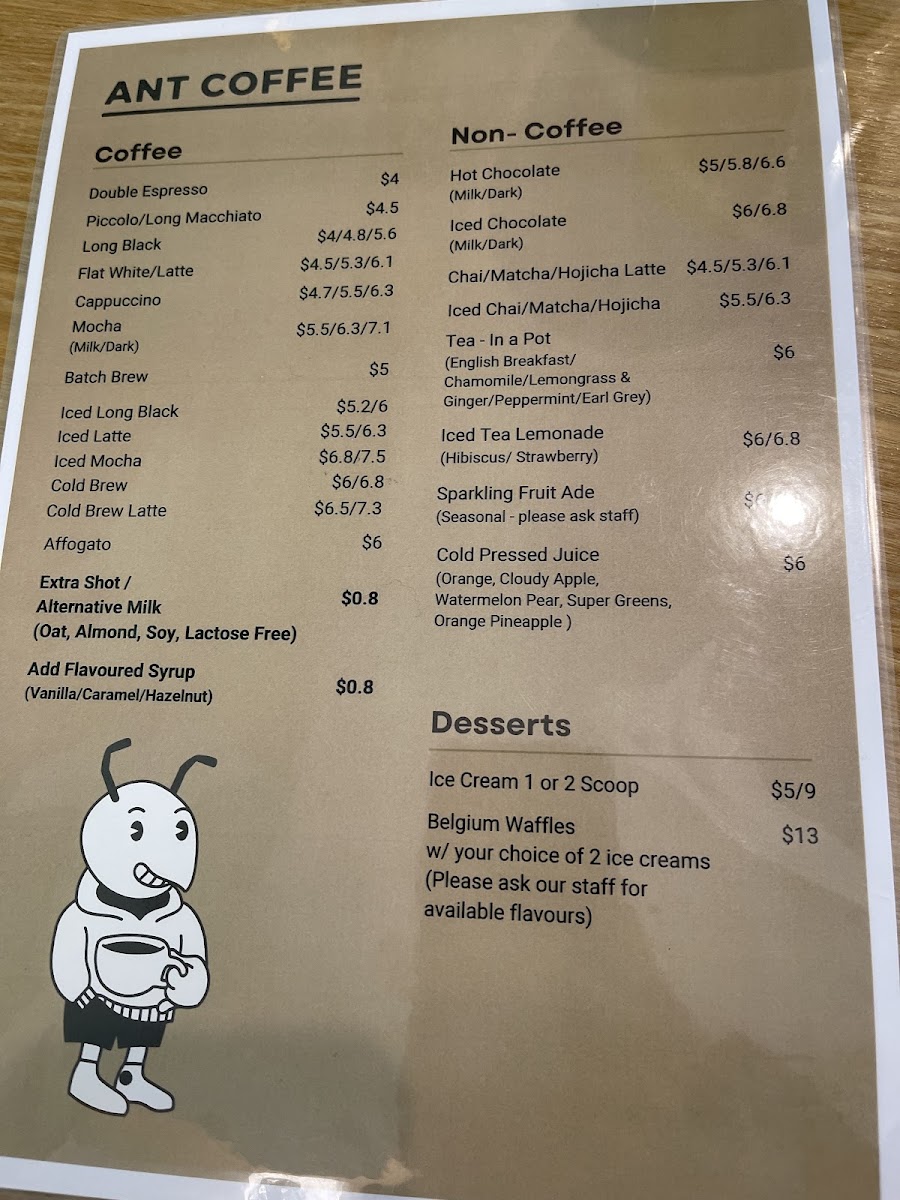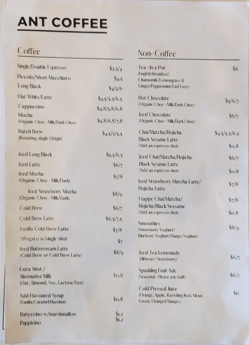 Ant Coffee Menu